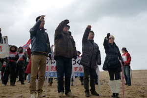 2012年12月8日に福井県敦賀市内で開かれた「2012もんじゅを廃炉へ!全国集会」に大交から5人が参加しました。白木海岸での集会ではもんじゅ廃炉に向けて一致団結して取り組んでいくことが確認され、もんじゅゲート前までデモ行進を行い、職員に抗議要請文を手渡しました。その後、きらめきみなと館に移動し、もんじゅでの9千ヶ所に上る点検不備があった報告などを受けました。